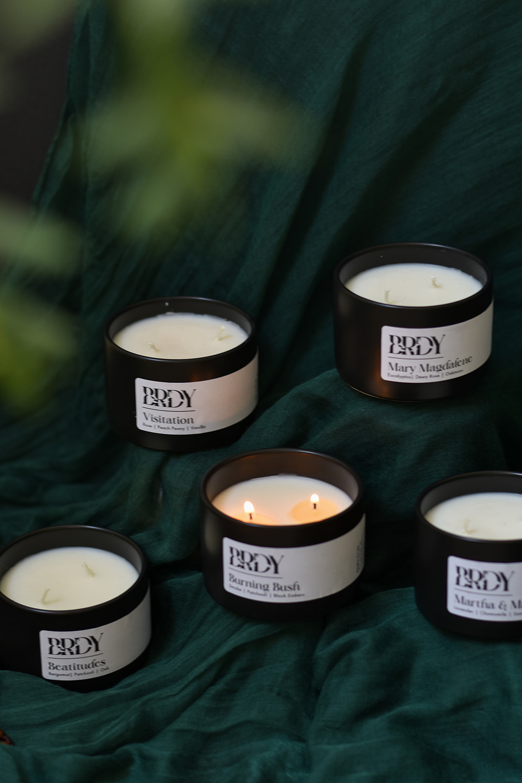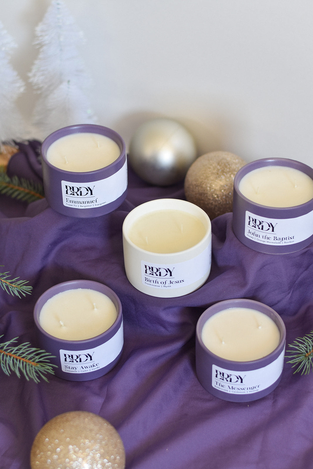 Non-toxic candles paired with Scripture to bring God into our everyday moments - a reminder to listen to His voice. Elevate your ambiance with our candles that support ceaseless prayer amidst a busy world.