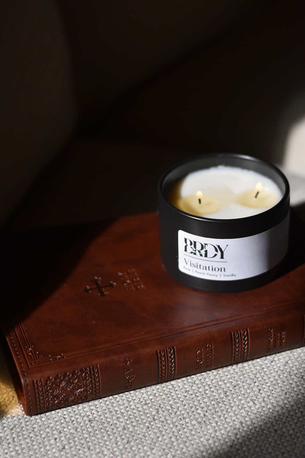 From this inspiration grew the heart of BRDY (pronounced "bird-ee") — the purpose is to create a reminder of God's presence in the everyday. Introducing BRDY Candles: candles that do more than scent a room. They serve as gentle reminders of Scripture and God’s presence, so when you enter a room, the fragrance invites you to pause, breathe, and remember the Bible story it honors. It’s a natural way to keep faith present in your daily life, through the power of scent and prayer combined.